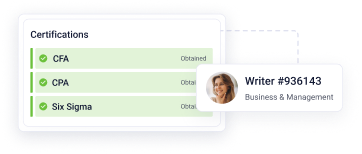 If all you have is a hypothesis, trust our writers to outline and execute a winning graduation project for you. If all you have is a PDF with requirements from your supervisor, trust our team to guide you through every step of the process, from a blank page to a successful pass. Experts in all MBA subjects, from marketing to finance, our helpers have both academic knowledge and industry experience to conduct the work at an exceptional level and at an accelerated pace. The results will speak for themselves, as confirmed by 16,000+ positive reviews shared by our satisfied customers.